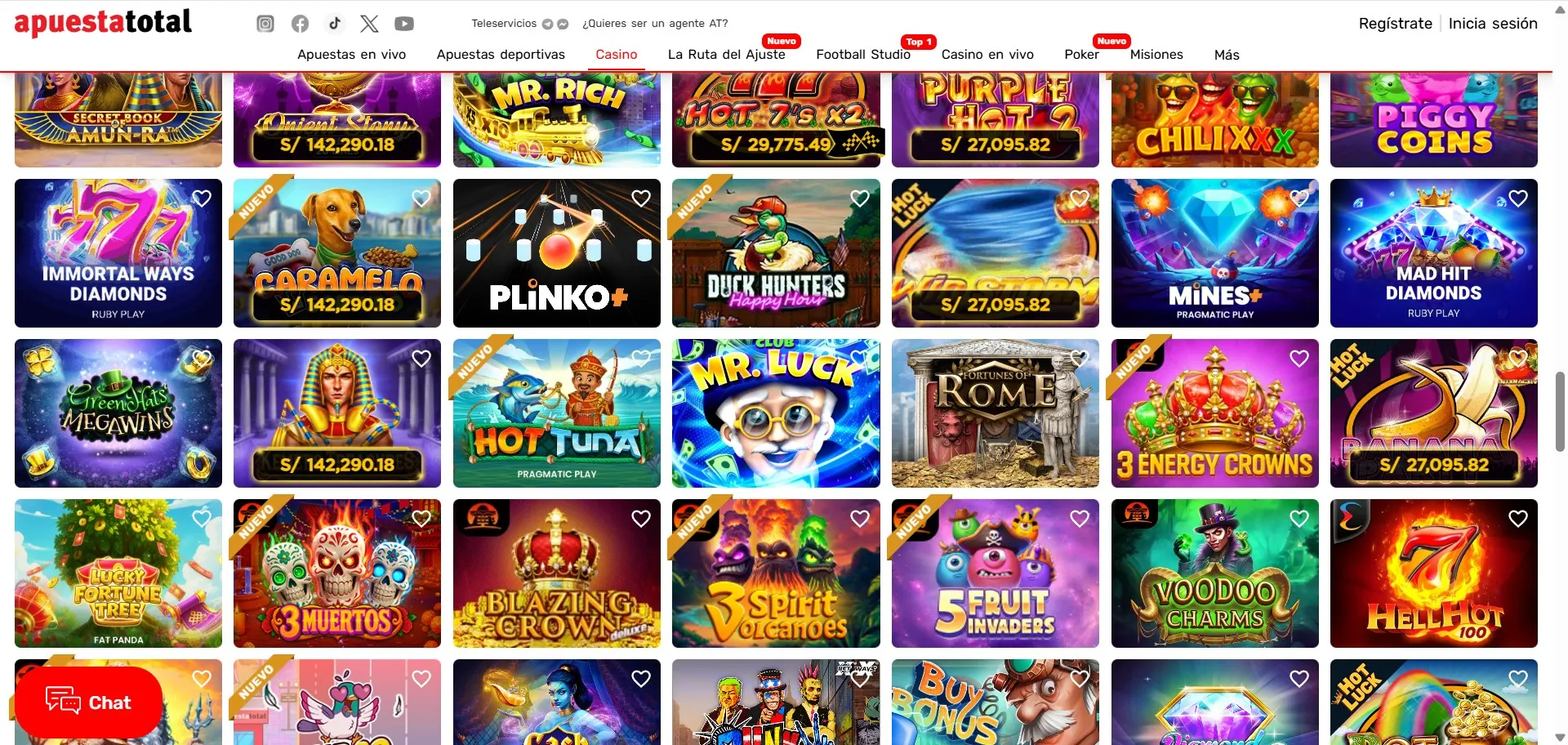 - Límites mínimos: muchas slots y mesas en vivo permiten apuestas desde montos bajos, típicamente desde PEN 0.10–1.00 en tragamonedas y desde PEN 1–5 en mesas RNG; los límites exactos dependen del título y la mesa.